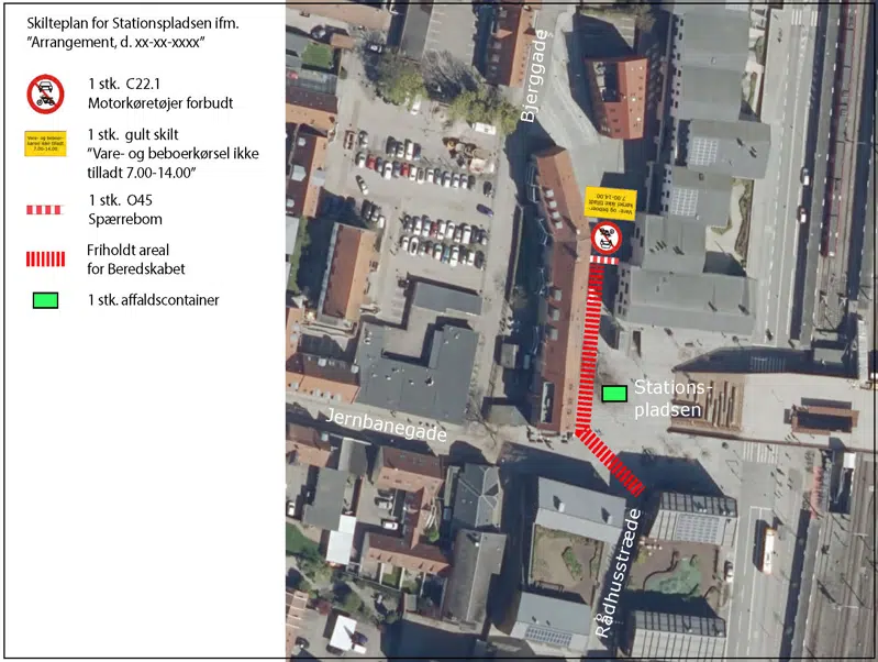 Der skal være tid til at du får udarbejdet en skilteplan, som Midt- og Vestsjællands Politi skal godkende. Skilteplan skal sendes til Vej, Park og Byrum, som kontakter Politiet herom.